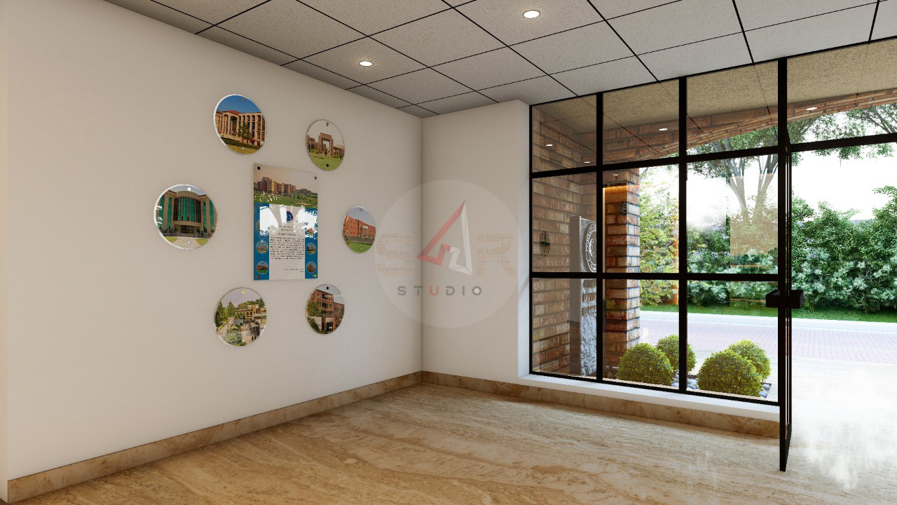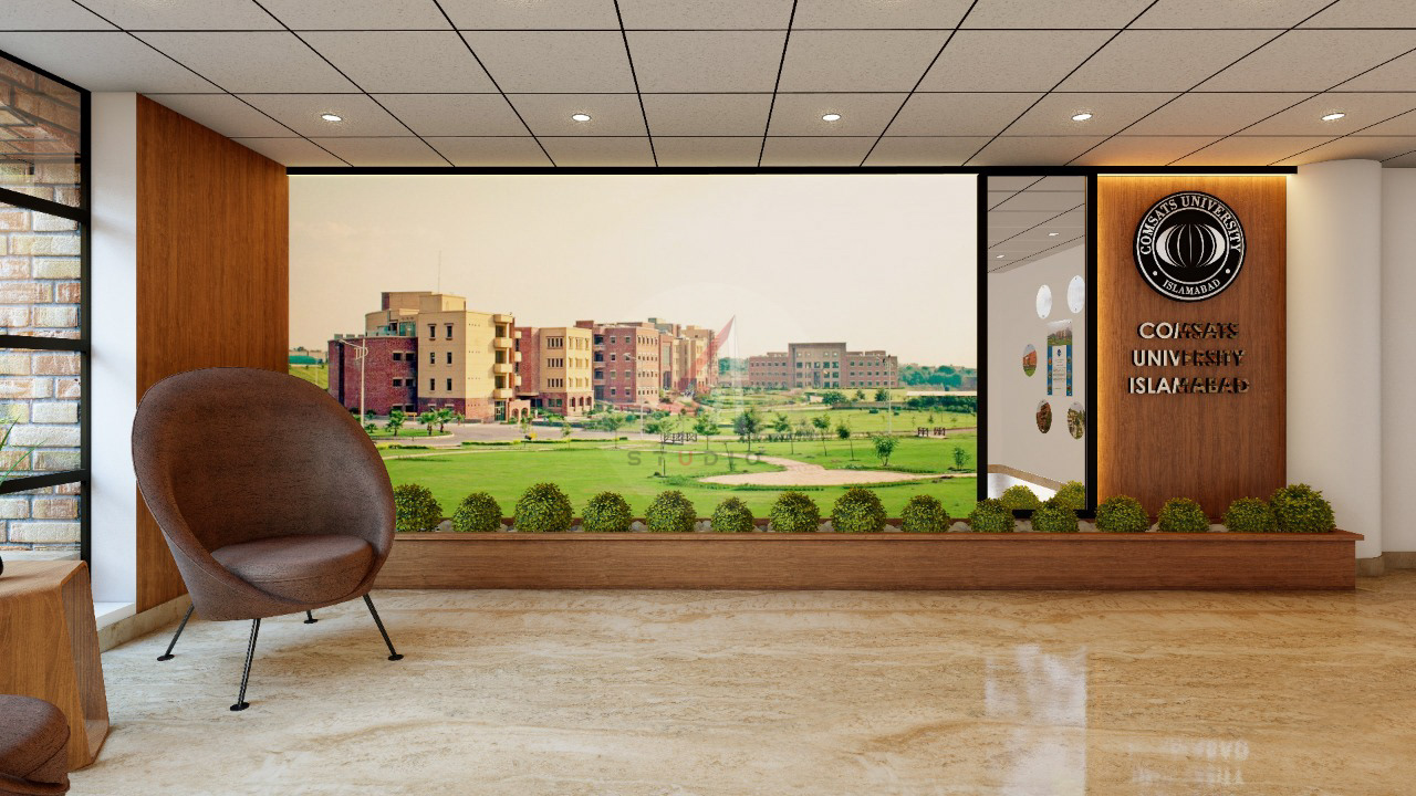 This project involves the complete interior design and execution of the Admin Lobby at COMSATS University Islamabad (Islamabad Campus). The scope of work covered the entire interior development, from initial concept and space planning to material selection, lighting design, ceiling treatments, wall finishes, and furniture layout.