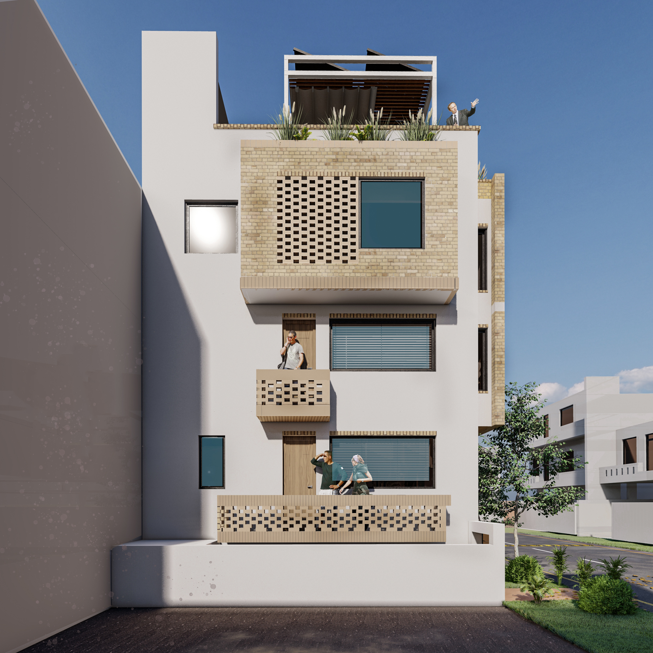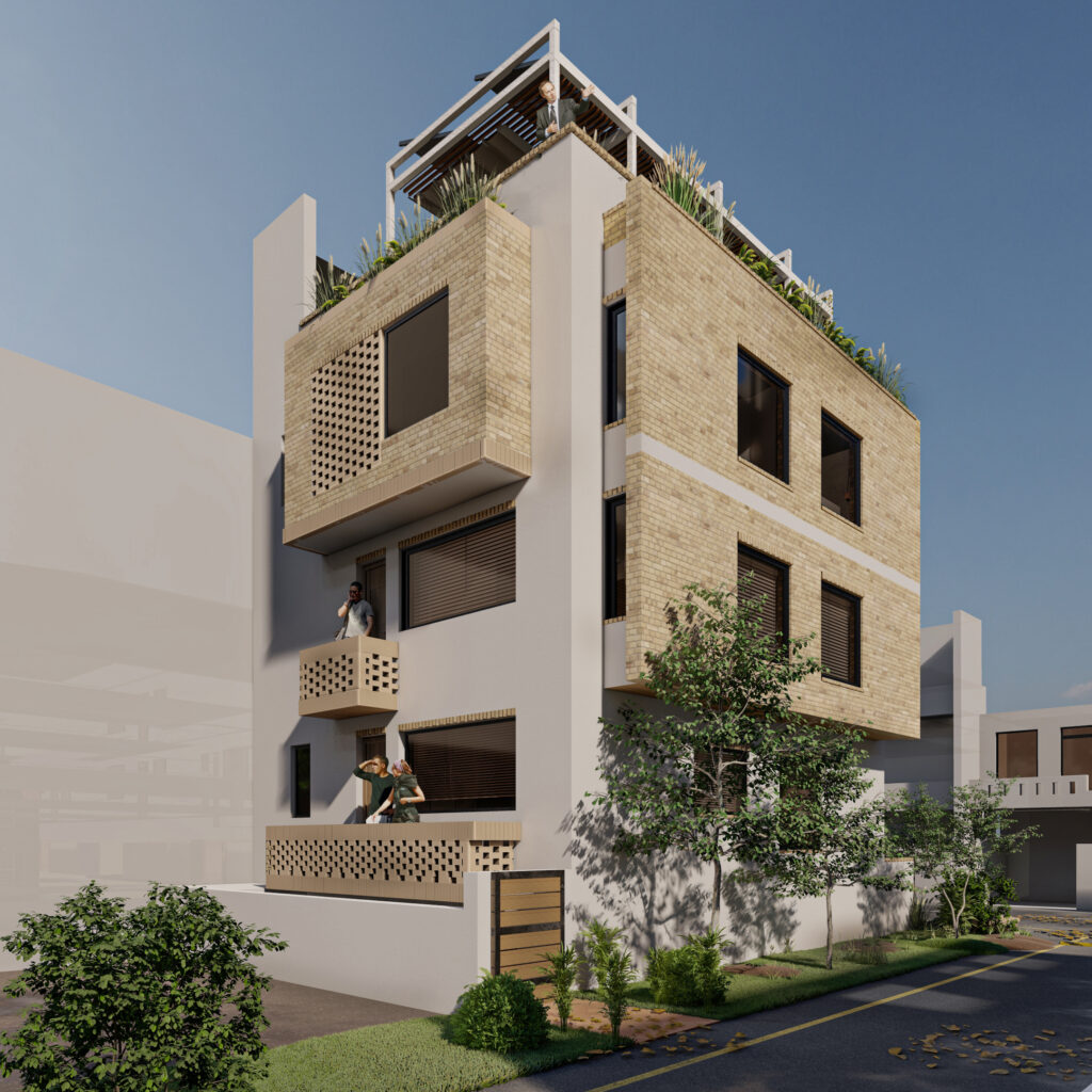 involved a challenging layout and façade development due to limited plot size and multiple functional
