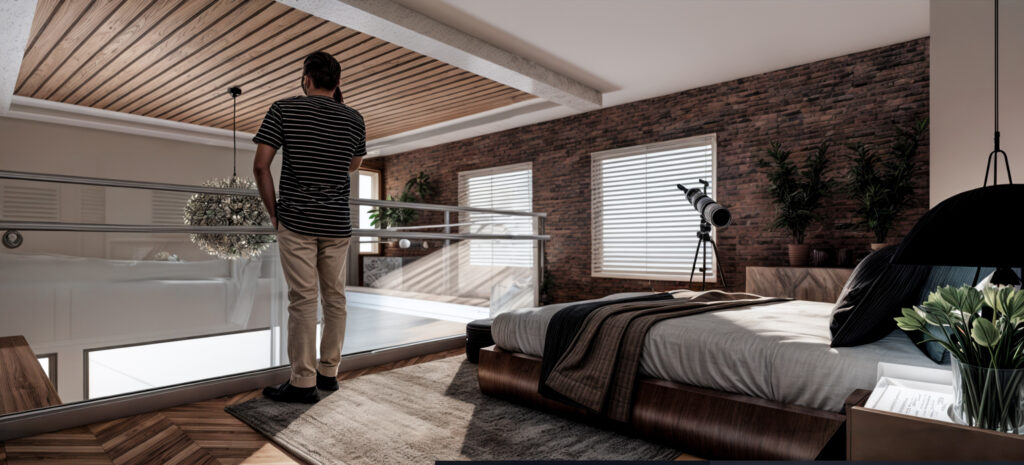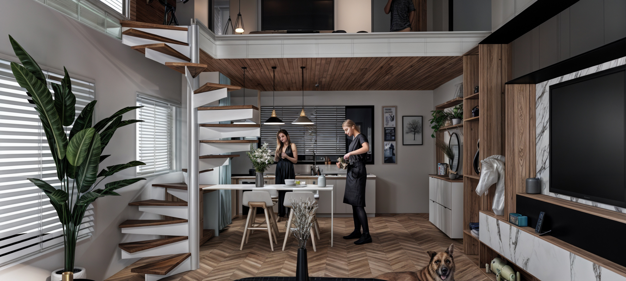 featuring a mezzanine floor that adds complexity and spatial depth to the overall planning. The project